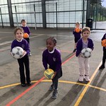 In PE, Year 1 pupils are developing their throwing and catching skills through fun and engaging activities. Children work with a partner to practise watching the ball carefully, keeping their hands ready and close together, and improving coordination. As their confidence grows, they move on to simple throwing and catching games that help build teamwork, control, and enjoyment of physical activity.