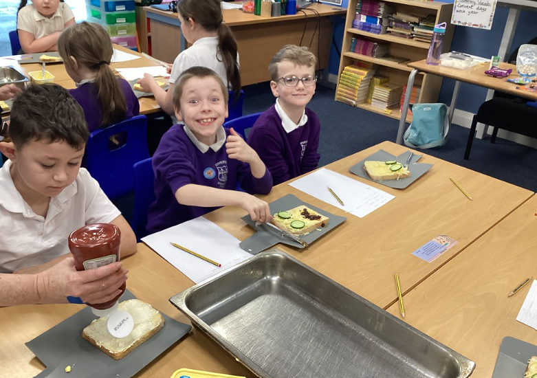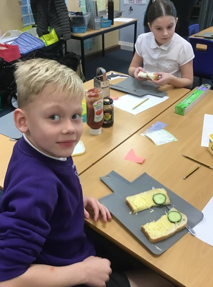 With food on all our minds before Christmas, Year 4 decided to utilise our Christmas Dinner to satisfy our D&T brief. Our main aim was to learn the skill of 'spreading' so we thought: what do we normally do with leftovers from a meal? Make a sandwich was the most common reply so we did exactly that with Christmas Dinner leftovers! Some of us decided to make a leftovers pizza, whereas others of us wanted a juicy toasted sandwich. Each of them needed 'spreading' with either butter or tomato passata. As you can see from our faces, this project gave us particular satisfaction.